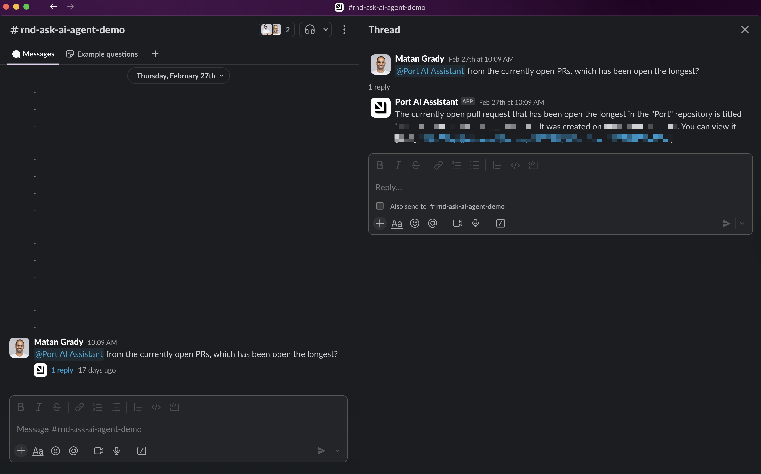 This provides a more seamless way to interact with your Port AI capabilities while working in Slack.