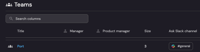 Once you install the Port Slack app, Port automatically enriches any Slack channel URL in your catalog with the actual channel name. This makes it easier to understand context, ownership, and communication paths at a glance.