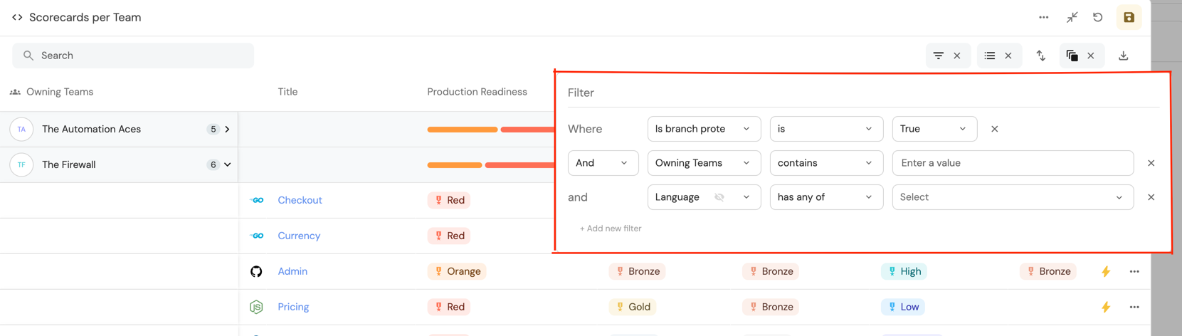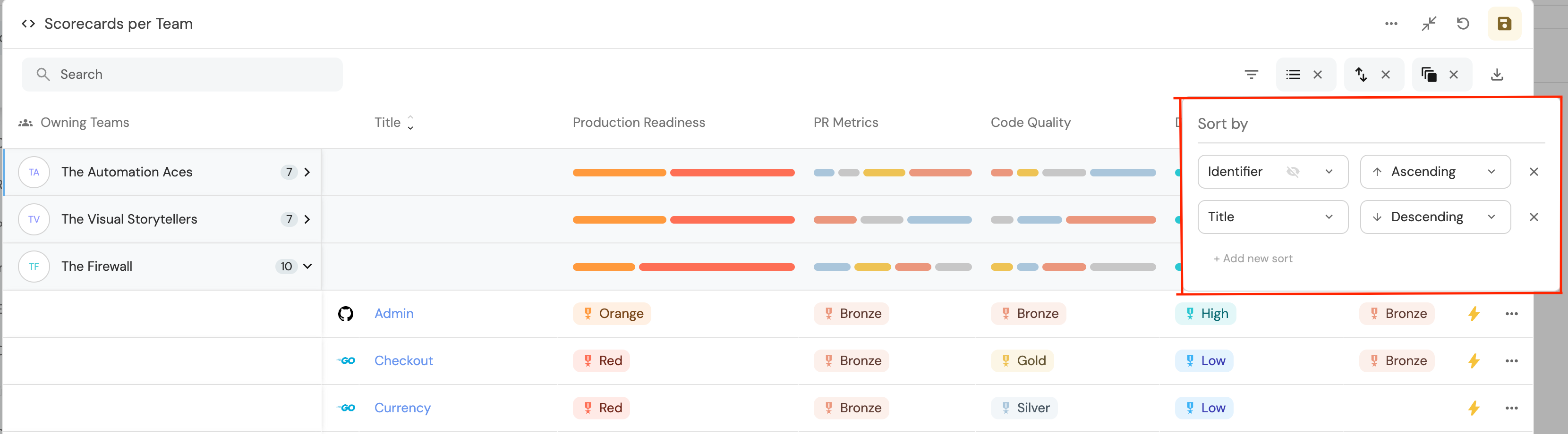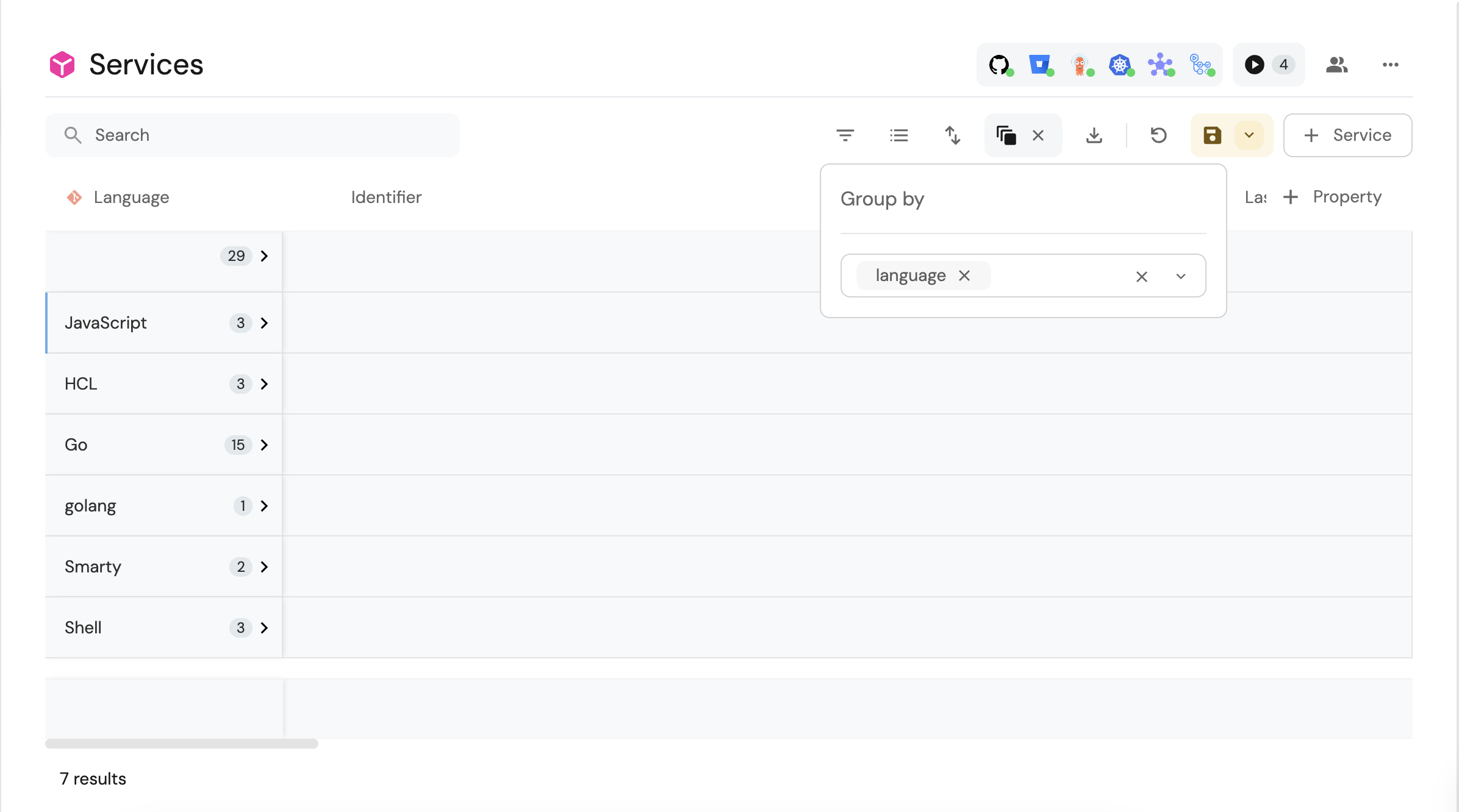 The group-by option is useful when you want to create custom views for users, such as "microservices by owners".
