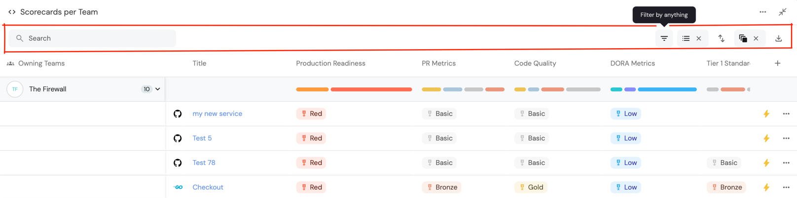 Port provides a free-text search option on tables. This will search all of the entities' properties and display the entities that match the query.