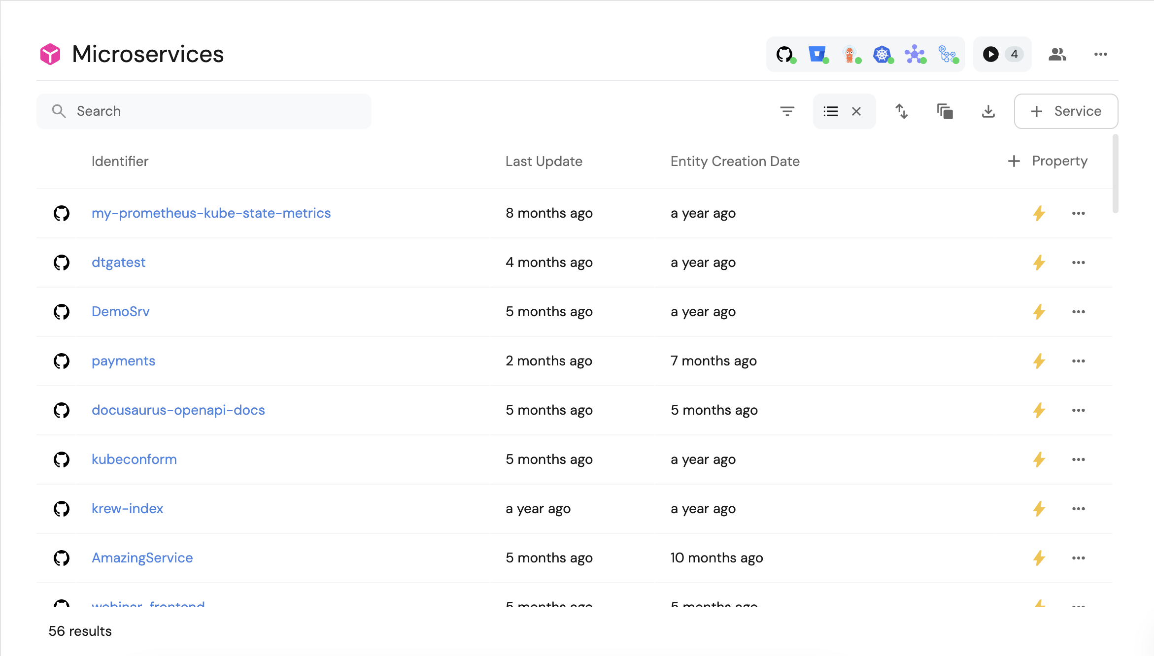 In this example we can see all of the microservice entities we created from the microservice blueprint:
