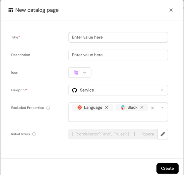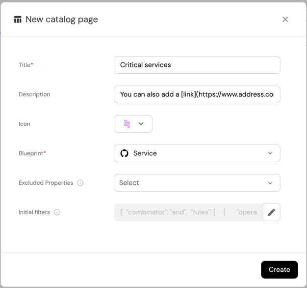 You can also manually create additional catalog pages for any existing blueprint, and customize them as you wish. Read on to see the available customization options.