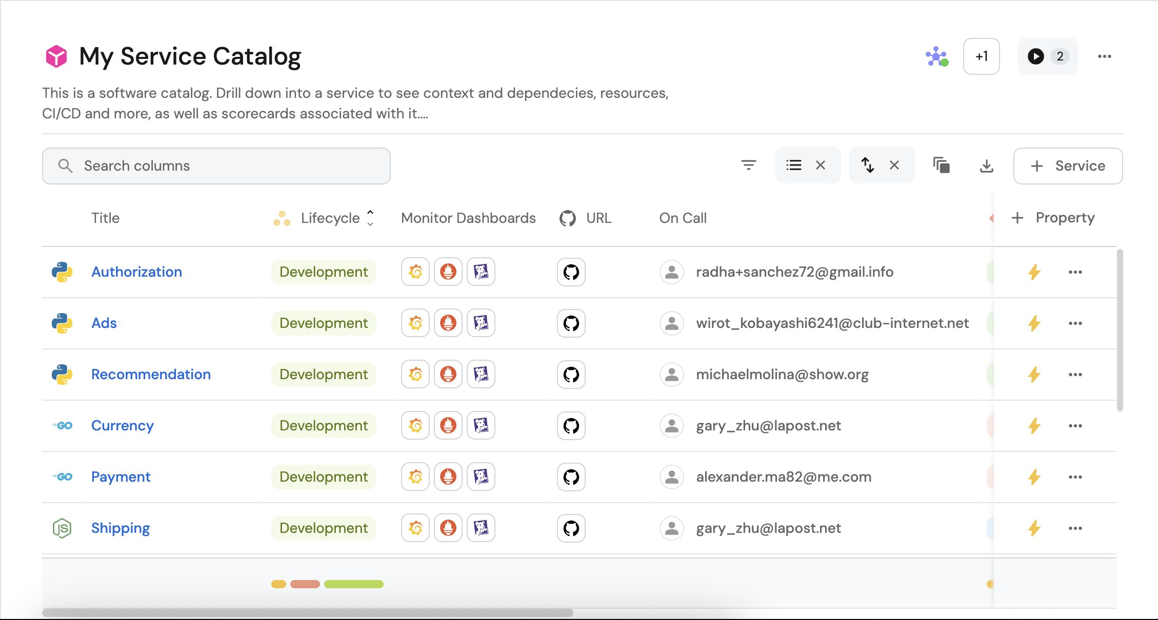 Your software catalog is the main entry point to your portal. It centralizes everything you need to know about your services, resources, and environments.
