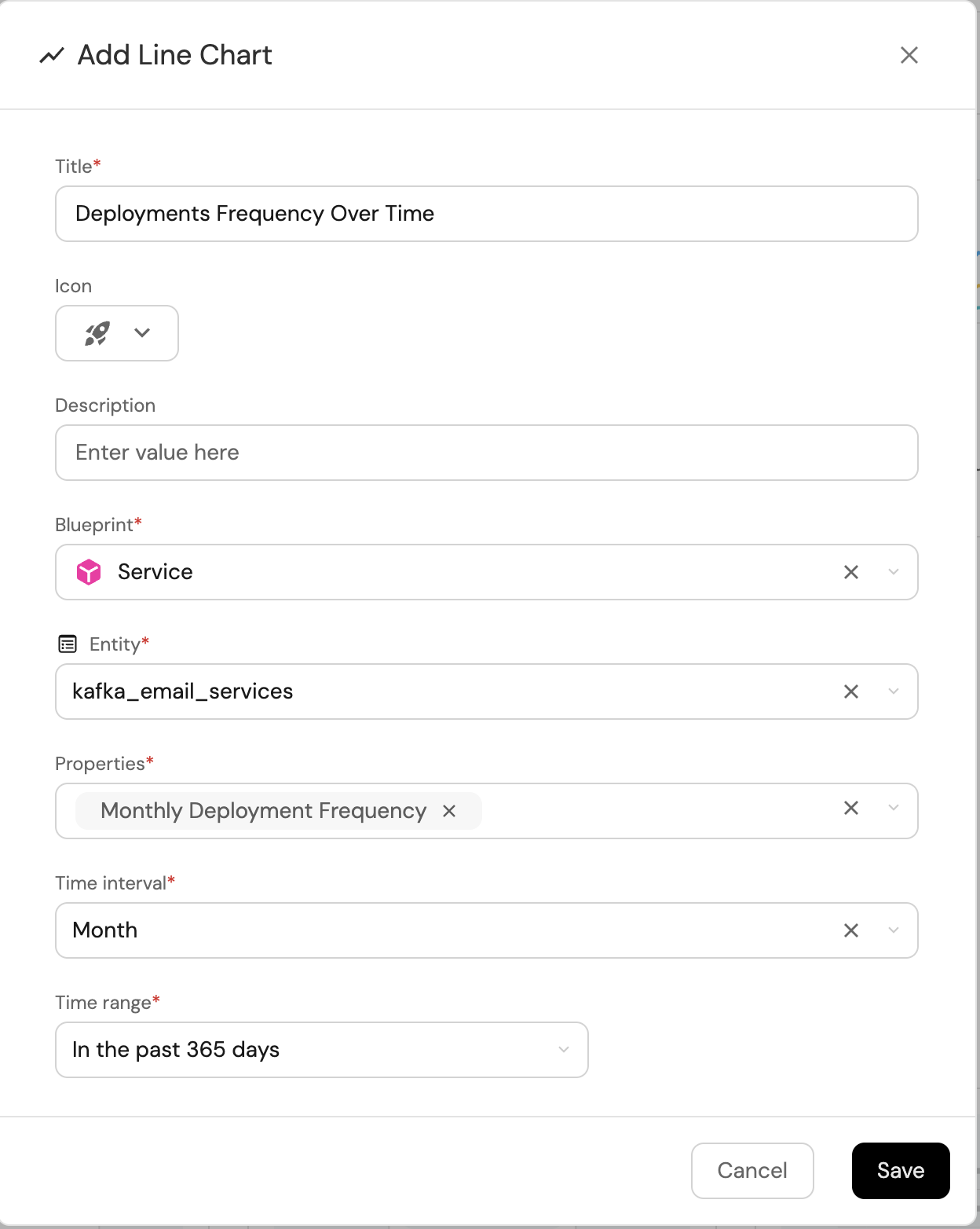 2. Title: Deployments Frequency Over Time (add the rocket icon).