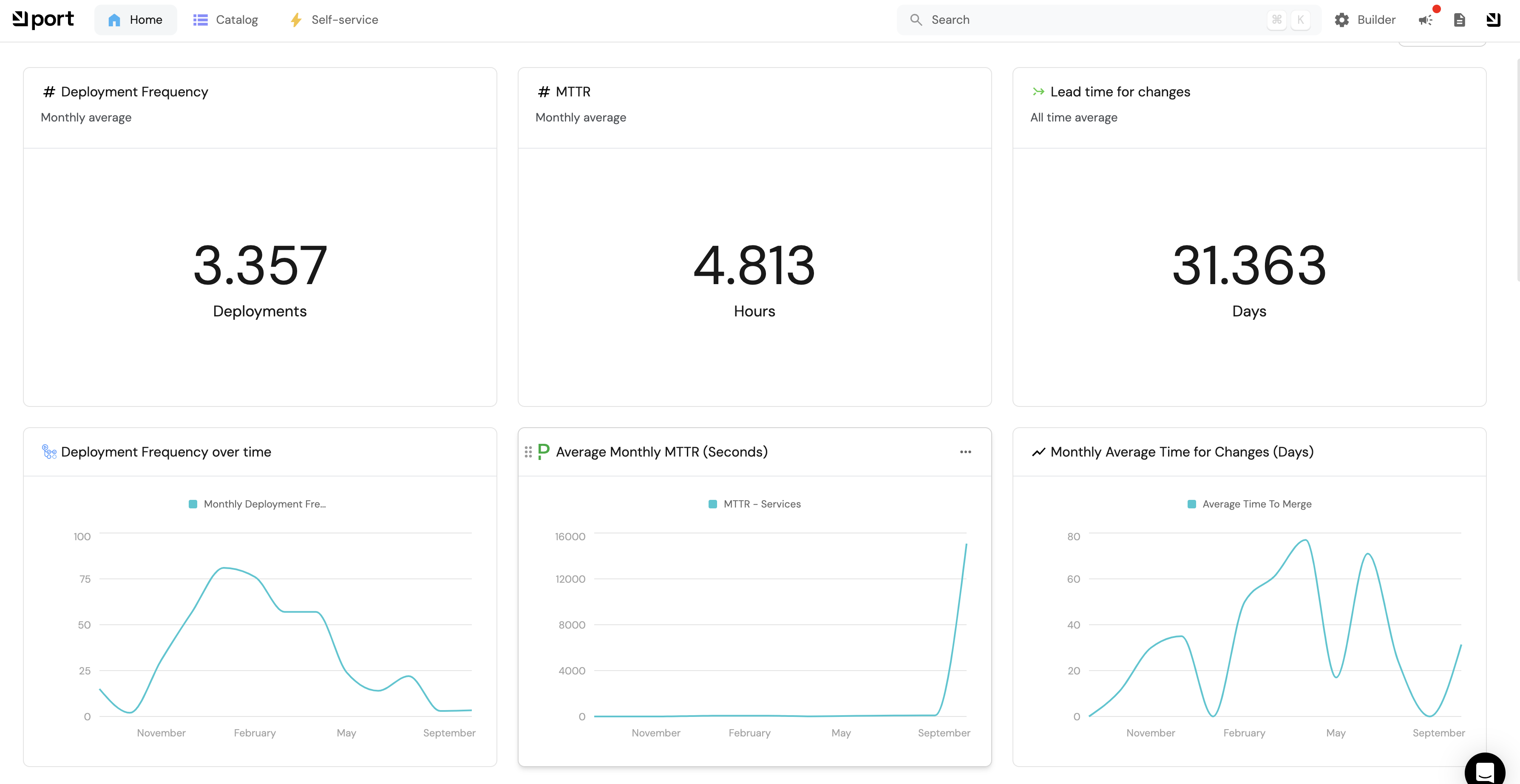 Port's dashboards allow you to create custom widgets to track metrics and monitor your team's performance over time.
